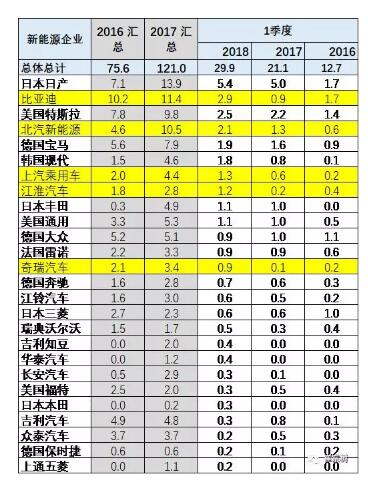 2018年1-3月份,全球新能源乘用車銷量達到30萬臺,同比增速達到42。其中中國銷量達到11.65萬臺,同比增長113%。18年1-3月是中國新能源車起步較快的時點,銷量增長突出也是正常。而3月的生產很強,部分上市的新品的價格更務實,看來有逐步擺脫補貼政策的獨立發展態勢。