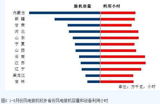 分類型看,1-8月份,全國(guó)水電設(shè)備平均利用小時(shí)為2338小時(shí),比上年同期增加34小時(shí)。在水電裝機(jī)容量超過(guò)1000萬(wàn)千瓦的8個(gè)省份中,青海、廣西、湖北、云南和貴州同比分別增加907、298、240、180和134小時(shí),湖南、廣東和四川同比分別降低589、106和66小時(shí);全國(guó)火電設(shè)備平均利用小時(shí)為2939小時(shí)(其中,燃煤發(fā)電設(shè)備平均利用小時(shí)2950小時(shí)),比上年同期增加145小時(shí)。分省份看,全國(guó)共有12個(gè)省份火電設(shè)備利用小時(shí)超過(guò)全國(guó)平均水平,其中江西3529小時(shí),河北和安徽超過(guò)3400小時(shí),內(nèi)蒙古、江蘇、陜西、山東、寧夏、福建、天津和海南超過(guò)3000小時(shí),云南和西藏分別僅為1271和218小時(shí)。與上年同期相比,全國(guó)共有25個(gè)省份火電利用小時(shí)數(shù)同比增加,其中,福建同比增加超過(guò)800小時(shí),增加843小時(shí),湖南、廣東、廣西和云南同比增加超過(guò)400小時(shí),分別增加508、476、473和448小時(shí),而青海、江蘇、寧夏、山東、新疆和陜西同比降低,其中青海、江蘇、寧夏、山東和新疆同比分別降低492、270、215、147和134小時(shí);全國(guó)核電設(shè)備平均利用小時(shí)4820小時(shí),比上年同期增加77小時(shí);全國(guó)并網(wǎng)風(fēng)電設(shè)備平均利用小時(shí)1412小時(shí),比上年同期增加167小時(shí);全國(guó)太陽(yáng)能發(fā)電設(shè)備平均利用小時(shí)851小時(shí)。