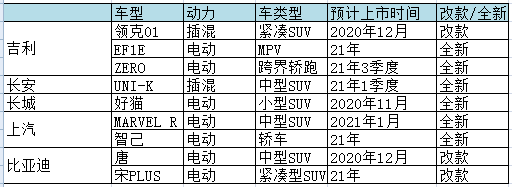 自主品牌2021年上市的電動車型