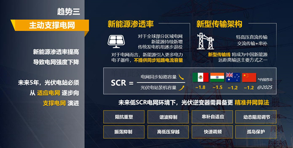 新能源滲透率提高導致電網強度下降。未來5年,光伏電站必須從適應電網逐步向支撐電網演進。