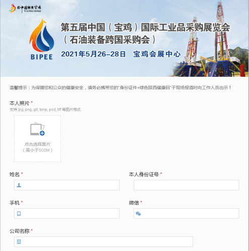 第五屆中國(寶雞)國際工業品采購展覽會(石油裝備跨國采購會)將于2021年5月26-28日在寶雞會展中心舉辦,線上實名登記現已全面開啟,提前登記,告別排隊。