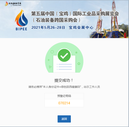以上參觀新流程,你get到了嗎?如果已經掌握,就即刻線上注冊預約參觀吧。第五屆中國(寶雞)國際工業品采購展覽會(石油裝備跨國采購會)等你來!