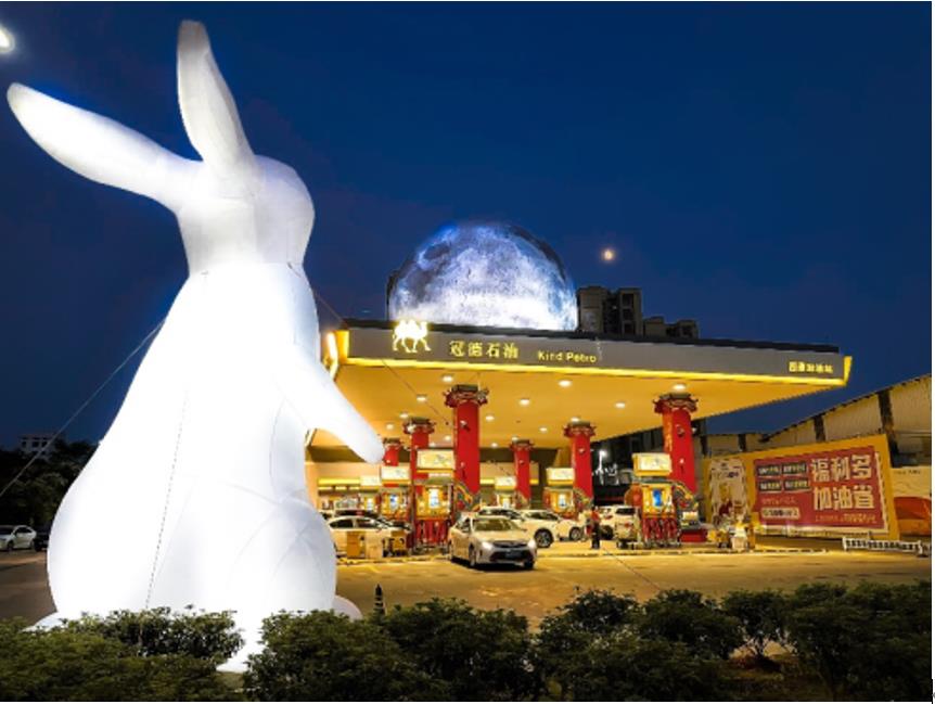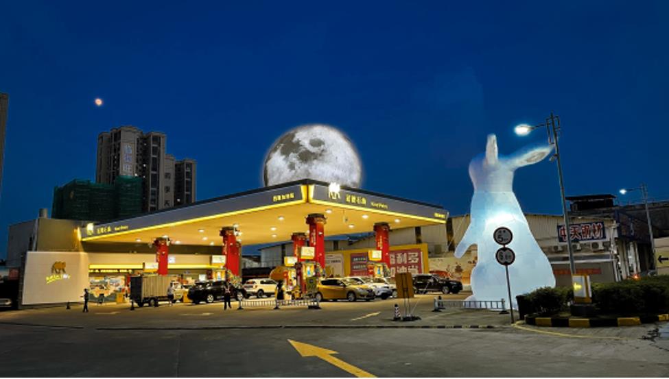 傳統的東方美學,講究的是恢弘大氣與內斂內秀的完美統一,在冠德國潮主題加油站中,我們也看到了這種表達。遠遠看去加油站的上方懸掛著一輪大大的滿月,與地面望月的玉兔相得益彰,瞬間激起游子們的思鄉情愫,視覺沖擊力相當強烈。走進油站,國潮的祥瑞之感撲面而來,明亮的黃既是冠德石油的色彩符號,也是國潮中象征尊貴的顏色,大面積運用是對中國傳統色的致敬,也讓油站更添活力。尤其是國潮造型的油機跟柱子,前者別具一格的紋樣讓人眼前一亮,后者恢弘大氣,氣勢挺拔強勢,將油站屬性跟國潮文化完美融合在了一起,符合國潮的美學典范。