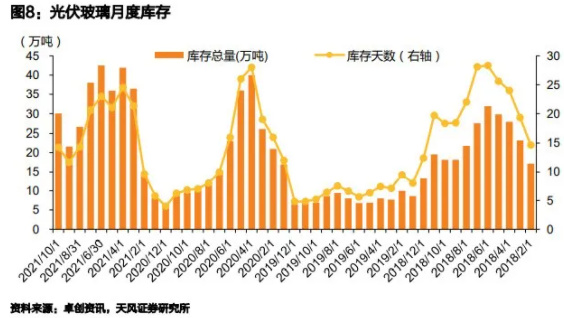 據(jù)卓創(chuàng)資訊,截至12月9日,庫(kù)存天數(shù)約24.39天,環(huán)比上周增加2.48%。玻璃廠家生產(chǎn)成本仍 偏高,利潤(rùn)空間有限,隨著庫(kù)存持續(xù)增加,部分有意讓利出貨。我們預(yù)計(jì)隨著后續(xù)存量項(xiàng)目,已規(guī)劃的保障 性并網(wǎng)項(xiàng)目及部分分布式項(xiàng)目的需求放量,累庫(kù)情況或有改善。