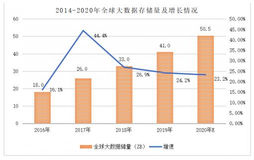Statista數據統計,2020年全球數據產生量將達到50.5ZB,同比2019年增長23.2%。從全球大數據儲量分布狀況分析,我國已成為產生和積累數據量最大、數據類型最豐富的國家之一,占據全球大數據儲量的23%;美國大數據存儲量位居全球第二,占比全球大數據儲量的21%。數據作為生產要素,具有基礎性戰略資源和關鍵性生產要素的雙重角色,數據資源也已成為影響全球競爭的關鍵戰略性資源。