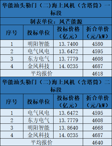 相關(guān)人士表示,本次投標各家投標機型11MW-13MW不等。塔筒大概折合700-800元/kW。減去塔筒價格后,項目一最低報價約3780-3880元/kW,項目二最低報價約3795-3895元/kW。