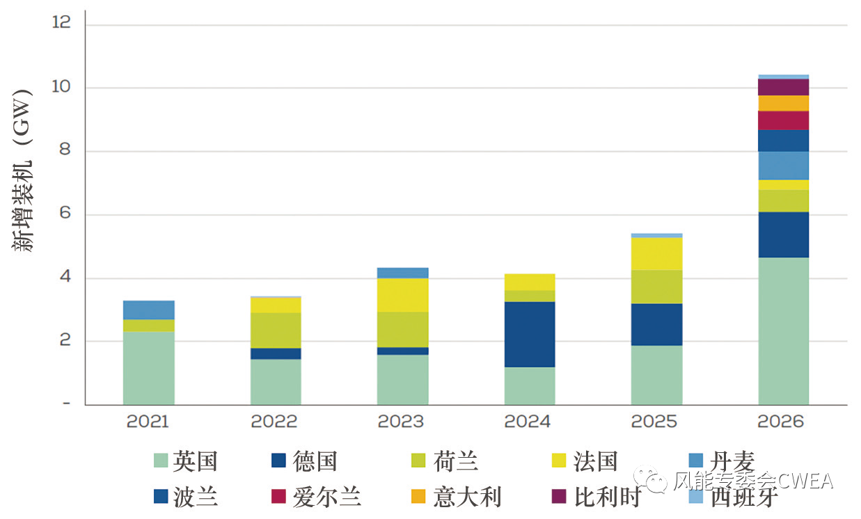 圖4 2022—2026年度歐洲各國海上新增裝機容量預測