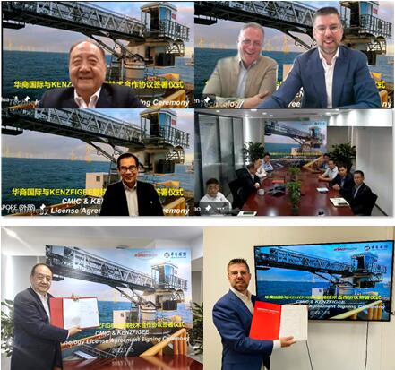 2022年7月15日,華商國際與荷蘭海上風電重型裝備科技龍頭企業KenzFigee簽署海上風電運維核心裝備技術許可轉讓協議。此協議包含KenzFigee 3D主動運動補償舷梯在中國市場的研制、生產和改進的專有許可轉讓,以及面向國際市場的非排他內容;也是近期KenzFigee和華商國際雙方簽署的戰略性合作協議的具體合作項目之一。