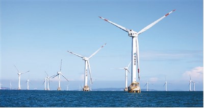 近日,在福建省福清市興化灣,風力發電機組矗立在大海之中,蔚為壯觀。作為全球首個大功率海上風電樣機試驗風場,福清興化灣海上風電場的年發電量為14億千瓦時,在保障電力供應、促進綠色低碳發展等方面發揮重要作用。