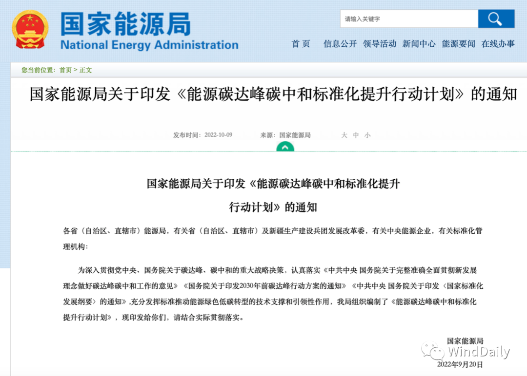 WindDaily獲悉,國家能源局10月9日發(fā)布《能源碳達(dá)峰碳中和標(biāo)準(zhǔn)化提升行動計劃》。文件指出:建立完善以光伏、風(fēng)電為主的可再生能源標(biāo)準(zhǔn)體系,研究建立支撐新型電力系統(tǒng)建設(shè)的標(biāo)準(zhǔn)體系,加快完善新型儲能標(biāo)準(zhǔn)體系,有力支撐大型風(fēng)電光伏基地、分布式能源等開發(fā)建設(shè)、并網(wǎng)運(yùn)行和消納利用。加快完善風(fēng)電、光伏等可再生能源標(biāo)準(zhǔn)。抓緊完善沙漠、戈壁、荒漠地區(qū)大型風(fēng)電光伏基地建設(shè)有關(guān)技術(shù)標(biāo)準(zhǔn),加快制定海上風(fēng)電開發(fā)及多種能源綜合利用技術(shù)標(biāo)準(zhǔn),推動分散式風(fēng)電、分布式光伏、戶用光伏等就近開發(fā)利用相關(guān)標(biāo)準(zhǔn)制修訂,建立完善光伏發(fā)電、光熱發(fā)電標(biāo)準(zhǔn)體系。制定風(fēng)電機(jī)組、光伏組件退役回收與再利用相關(guān)標(biāo)準(zhǔn)。具體如下: