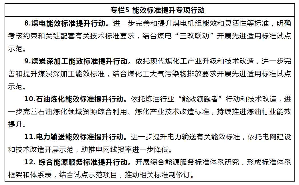 ——修訂一批常規(guī)能源生產(chǎn)轉(zhuǎn)化和輸送利用能效相關(guān)標(biāo)準(zhǔn),提升標(biāo)準(zhǔn)要求和水平,助推和規(guī)范資源綜合利用、能效提升。