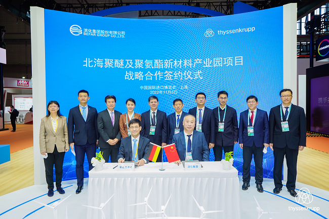 11月5日,蒂森克虜伯在第五屆中國國際進口博覽會開展首日上午,與濱化集團股份有限公司簽署戰略合作備忘錄,將圍繞濱州北海聚醚及聚氨酯新材料產業園開展全方位戰略合作。雙方自2001年來建立的合作伙伴關系得到了進一步深化。蒂森克虜伯大中華區首席執行官高巖博士與濱化集團股份有限公司總裁任元濱參加了簽字儀式。濱州市委常委、常務副市長張偉等領導參加活動并見證簽約。