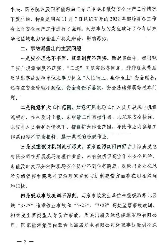 國際能源網/風電頭條(微信號:wind-2005s)獲悉,近日,華北能源監管局通報兩起人身身亡事故,其中一起為風電事故。