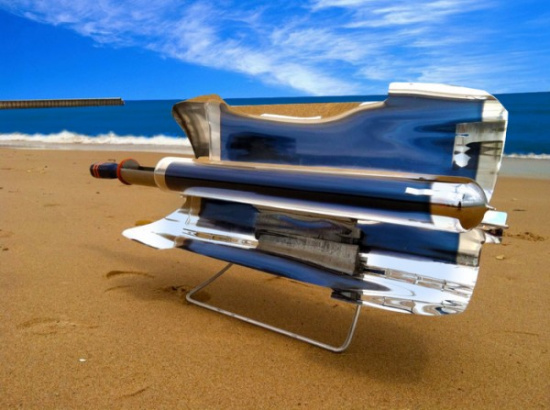 該款燒烤用具名為“GoSun”,發(fā)明者舍溫表示,他某次移走天臺(tái)的太陽(yáng)能熱水系統(tǒng)時(shí),發(fā)現(xiàn)板下的水管即使在陰天依然保持高溫,他突發(fā)奇想把一條熱狗腸放進(jìn)去,10分鐘后,熱狗腸完全煮熟,他于是把這技術(shù)套用在煮食工具中。