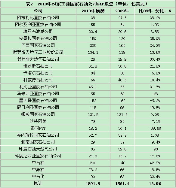 二、2010年國(guó)際大石油公司E&P投資預(yù)計(jì)與上年持平,而國(guó)家石油公司E&P投資將大幅增長(zhǎng)