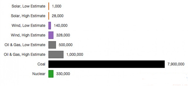 圖表:美國各種發電方式對致死鳥類的影響