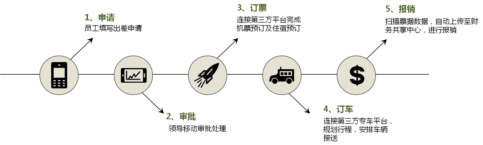 比如,員工通過手機填寫出差申請,領導移動審批后,系統直接連接在線平臺完成機票預定,并主動根據行程安排專車公司的接送服務,最后自動將對賬單返回企業進行核算。