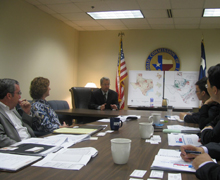 在華盛頓,課題組先后會(huì)見(jiàn)了美國(guó)聯(lián)邦監(jiān)管機(jī)構(gòu)——能源部(DOE)、內(nèi)政部(DOI)、商務(wù)部(DOC)、環(huán)保署(EPA)、國(guó)務(wù)院(DOS)以及聯(lián)邦能源監(jiān)管委員會(huì)(FERC)的相關(guān)負(fù)責(zé)人。通過(guò)與他們的交流,了解到了聯(lián)邦政府各機(jī)構(gòu)在頁(yè)巖氣監(jiān)管中所扮演的不同角色及與地方政府的不同分工。