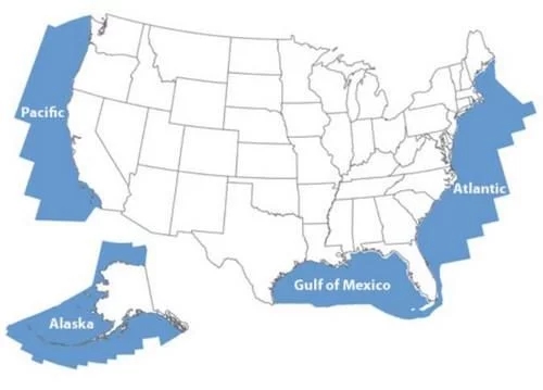 美國聯邦政府擬開放的海上區(qū)塊位置