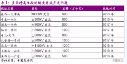 由于2015年補貼下調(diào)帶動大規(guī)模搶裝,2016年三北地區(qū)風電消納情況急劇惡化。2017年兩會李克強總理做政府工作報告時提到:“抓緊解決機制和技術(shù)問題,優(yōu)先保障可再生能源發(fā)電上網(wǎng),有效緩解棄水、棄風、棄光狀況。”國家能源局、國家電網(wǎng)公司也明確表態(tài),到2020年根本解決新能源消納問題,棄風棄光率控制在5%以內(nèi)。為了解決“三北”地區(qū)的電源送出問題,國家核準建設(shè)了多條特高壓線路。這些線路合計輸送功率將達到7700萬千瓦,即使每年只分配1000小時用于輸送新能源,也足以增加770億千瓦時的新能源消納,而2016年全國棄風、棄光電量合計為570億千瓦時。2017年部分特高壓線路投運后棄風、棄光情況已經(jīng)出現(xiàn)明顯好轉(zhuǎn),隨著在建特高壓線路陸續(xù)投運,棄風、棄光情況將持續(xù)改善,2020年完全能夠?qū)崿F(xiàn)降至5%以內(nèi)的目標。