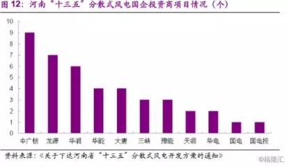 由于預期分散式風電會和分布式光伏類似,不發(fā)生棄電,從而保證投資收益的穩(wěn)定,并且單個項目總投資相較集中式風電大大減少(平均約在1億元左右),各類民營資本涌入分散式風電的開發(fā)成為趨勢。以河南省公布的項目為例來看,河南省“十三五”分散式風電開發(fā)方案文件中共有124個項目,其中業(yè)主為五大四小等國有投資商的項目有42個,占比34%,合計容量79.7萬千瓦,占比38%。相比集中式風電以國有電力投資商為主導的局面,分散式風電已經(jīng)顯露出民營資本活躍的跡象。