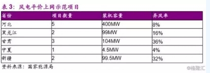2017年5月,國家能源局發(fā)文組織申報風電平價上網(wǎng)示范項目。示范項目的上網(wǎng)電價按當?shù)孛弘姌藯U上網(wǎng)電價執(zhí)行,相關(guān)發(fā)電量不核發(fā)綠色電力證書,相應(yīng)的電網(wǎng)企業(yè)確保風電平價上網(wǎng)示范項目不限電。最終河北、黑龍江、甘肅、寧夏、新疆等五省申報共計707MW的平價上網(wǎng)示范項目。