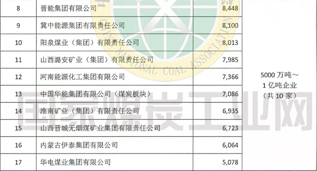 為深入貫徹落實習近平總書記關(guān)于能源安全新戰(zhàn)略的重要論述,推動現(xiàn)代化煤炭經(jīng)濟體系建設,促進煤炭工業(yè)高質(zhì)量發(fā)展,發(fā)揮骨干企業(yè)帶頭示范作用,提高行業(yè)凝聚力和社會影響力,中國煤炭工業(yè)協(xié)會參照國際通行做法,通過企業(yè)自主申報與協(xié)會統(tǒng)計指標數(shù)據(jù)相結(jié)合的方式,按2018年度煤炭產(chǎn)量為標準排出了2019中國煤炭企業(yè)煤炭產(chǎn)量50強,現(xiàn)予以發(fā)布。