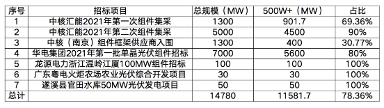 近日以來,以中核、華電為代表的央國企已經開啟或完成2021年第一批次的光伏組件設備招標工作,根據招標要求發現,大尺寸組件的需求已進入白熱化階段。
