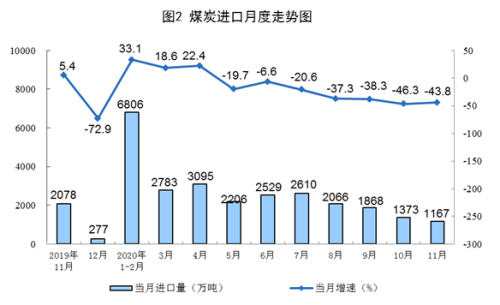 國家統(tǒng)計局發(fā)布11月份數(shù)據(jù)顯示,11月我國煤炭進口1167萬噸,同比下降43.8%。事實上,從今年5月份開始我國煤炭進口就大幅下降,來自國家統(tǒng)計局的煤炭進口月度走勢圖可以看到,5-11月我國煤炭進口量同比分別下降19.7%、6.6%、20.6%、37.3%、38.3%、46.3%、43.8%。煤炭進口大幅下滑在一定程度上導(dǎo)致煤炭供應(yīng)緊張。我國煤炭進口量較大的幾個省份廣東廣西江蘇均在南方,進口的減少使得這些省份的電廠需要轉(zhuǎn)而從北方港口購煤,受地理及供需狀況影響,煤炭供應(yīng)周期拉長,電廠保供壓力增大。