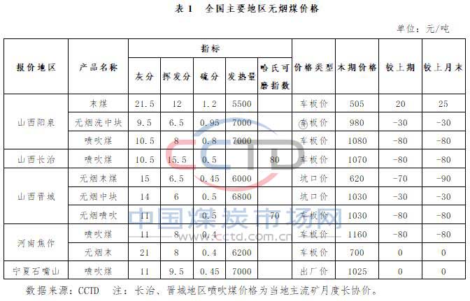 (1)需求季節(jié)性減弱 無煙電煤價格將以穩(wěn)為主