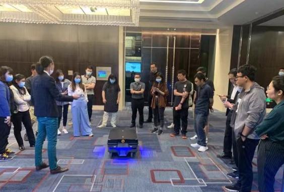 技術(shù)人員給參會(huì)人員演示機(jī)器人的工作內(nèi)容