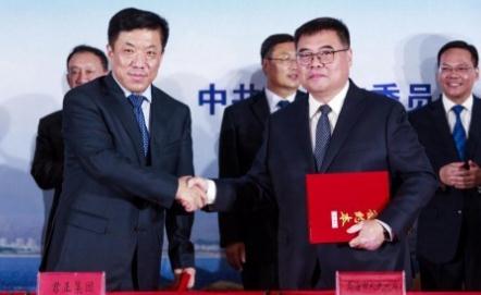 烏海市政府副市長李春曉與君正集團創始人、董事局主席杜江濤簽署投資協議