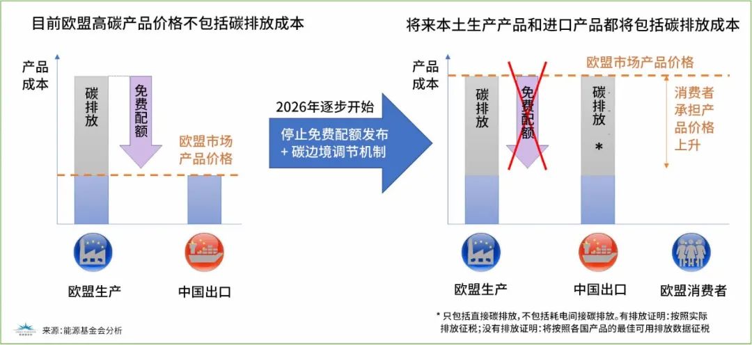 歐盟碳邊境調節機制影響示意圖(以鋼鐵產品為例)