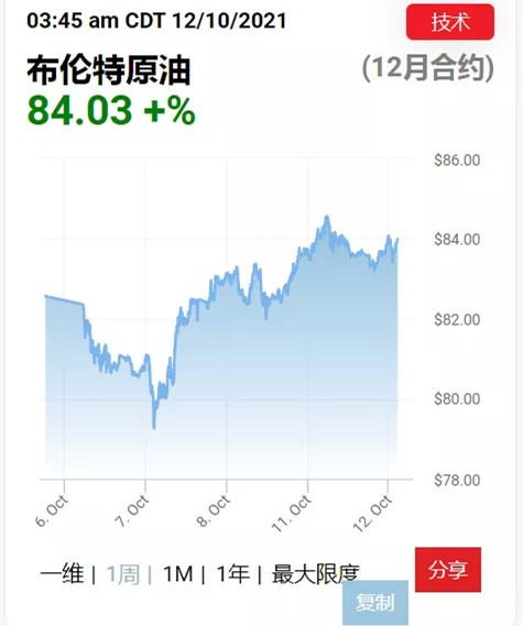 布倫特原油價格連日在80美元左右波動,截至發稿站上84.60美元,達到近3年來新高,逼近2018年10月的86.74美元階段性峰值。