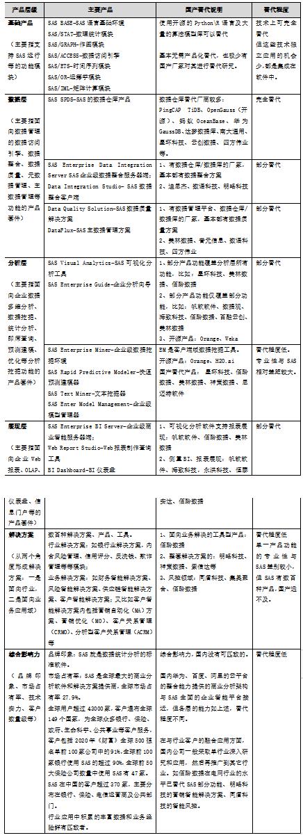 圖-SAS軟件產品體系及國產替代程度