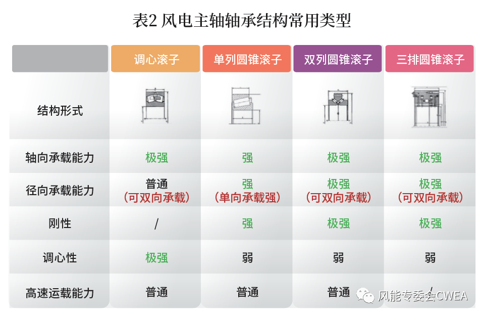 在目前的市場中,調心滾子軸承和圓錐軸承幾乎各占一半。伴隨著更大兆瓦機組的出現,雙饋機組也傾向于選擇圓錐滾子軸承形式。
