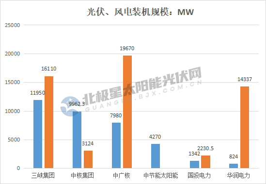 風(fēng)電方面,三峽、華潤(rùn)、中核、中廣核和國(guó)投電力總裝機(jī)超55.47GW,約占全國(guó)風(fēng)電裝機(jī)17%,中廣核、三峽集團(tuán)和華潤(rùn)電力裝機(jī)突破15GW。