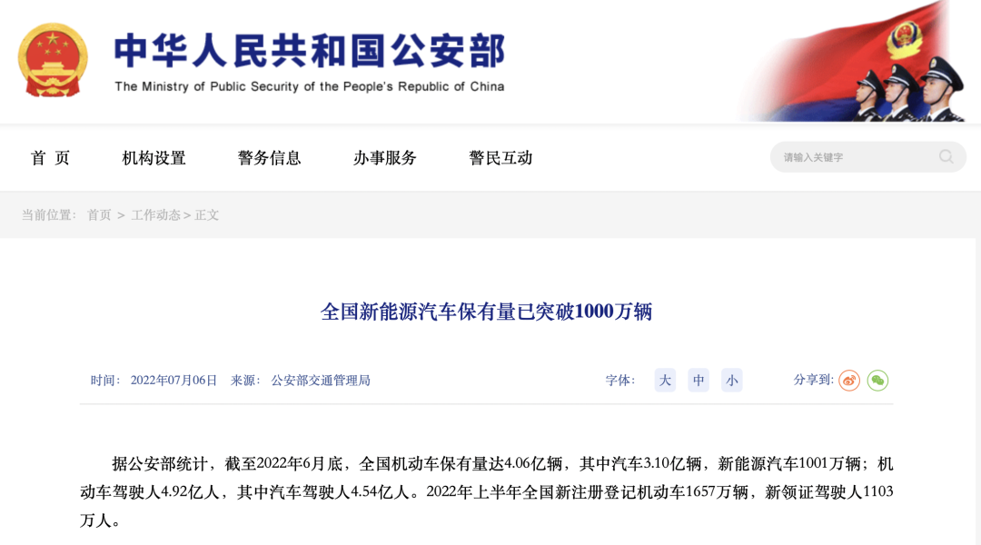 日前,公安部數(shù)據(jù)顯示,目前國(guó)內(nèi)新能源汽車(chē)的保有量已經(jīng)突破了1000萬(wàn)大關(guān),達(dá)到了1001萬(wàn)輛,占汽車(chē)總量的3.23%。