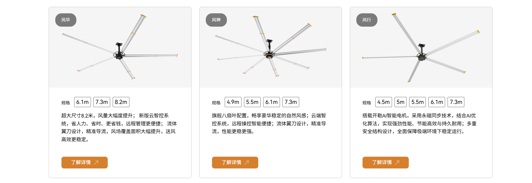 無論是針對超大空間的開勒大風扇風華系列,還是主打靈活移動的開勒大風扇愛牧系列,亦或是專為商業場景設計的開勒大風扇愛酷系列,每一款產品的背后,都凝聚著對“綠色工業發展”和“智能可持續”的追求。對于任何正在為高大空間通風降溫難題而困擾的企業來說,深入了解開勒這些系列產品的細節與參數,無疑是找到最優解的第一步。