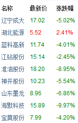 但在隨后的兩天,這些股票普遍未能延續30日大漲的牛勢,截止11月1日13:30,以上提及的個股中,除卻湖北能源(000883)在當天小幅上漲2.41%之外,其他個股無一例外全部一片慘綠,而在30日具有漲停表現的海默科技以9.97%的跌幅繼續領跑,準油股份(002207)也沒有好到哪里去,幾度下跌9.40%,又幾度被拉回到8.95%的跌幅。