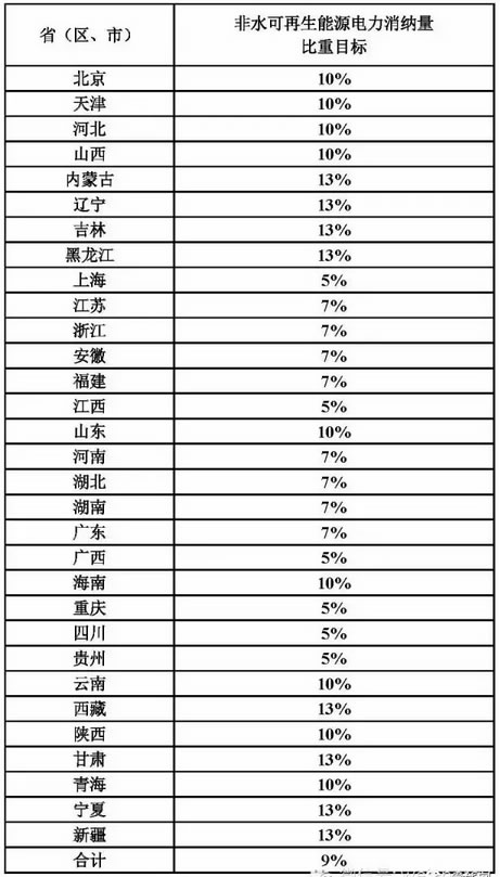 國家能源局根據(jù)各地區(qū)可再生能源資源狀況和能源消費(fèi)水平,依據(jù)全國可再生能源開發(fā)利用中長期總量目標(biāo),制定各省(區(qū)、市)能源消費(fèi)總量中的可再生能源比重目標(biāo)和全社會(huì)用電量中的非水電可再生能源電量比重指標(biāo),并予公布。鼓勵(lì)各省(區(qū)、市)能源主管部門制定本地區(qū)更高的可再生能源利用目標(biāo)。