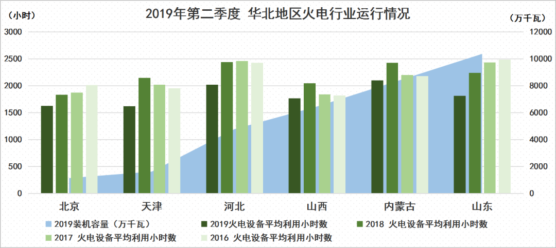 從火電設備平均利用小時數上看,華北地區均出現明顯下滑,北京、天津、河北、山西、內蒙古、山東分別同比下滑206小時、528小時、422小時、278小時、327小時、425小時。